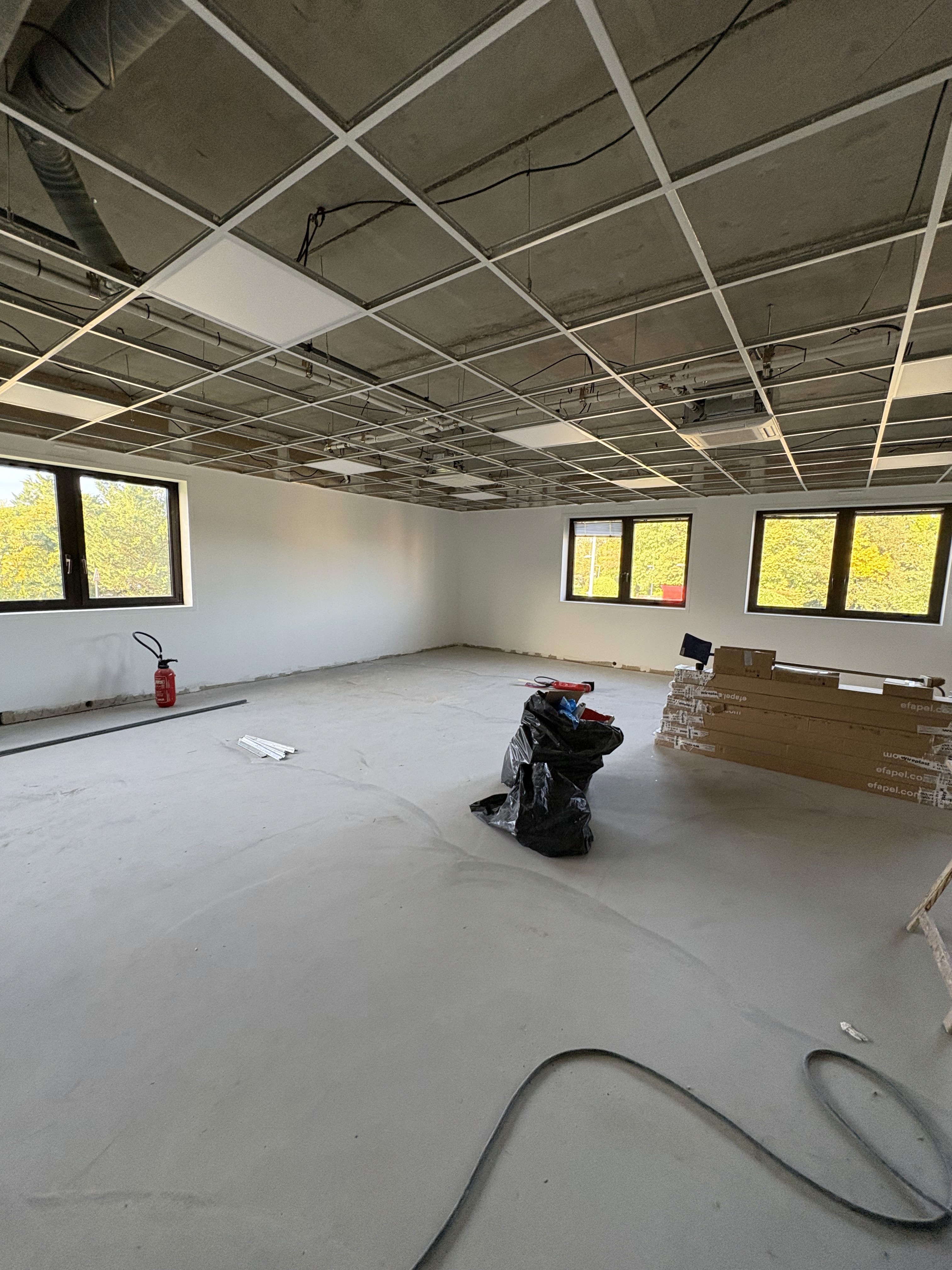 Sur ce projet, nos équipes ont commencé par la dépose complète de l’ancienne cloison modulaire ainsi que des dalles de faux plafond existantes. Cette étape a permis de préparer parfaitement l’espace pour les travaux suivants.